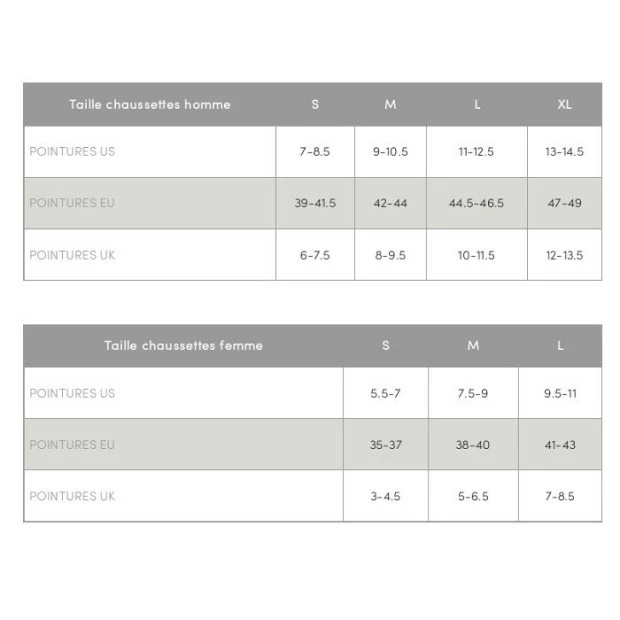 Dotées de renforts légers sous le pied, d’un soutien de la voûte plantaire et du tendon d’Achille et d’une grande respirabilité sur le cou-de-pied, elles ont aussi une pointe sans couture pour ne pas gêner dans les chaussures. Le mérinos évacue l’humidité et régule votre température. Vous avez vos chaussettes. Alors maintenant, choisissez votre sport !